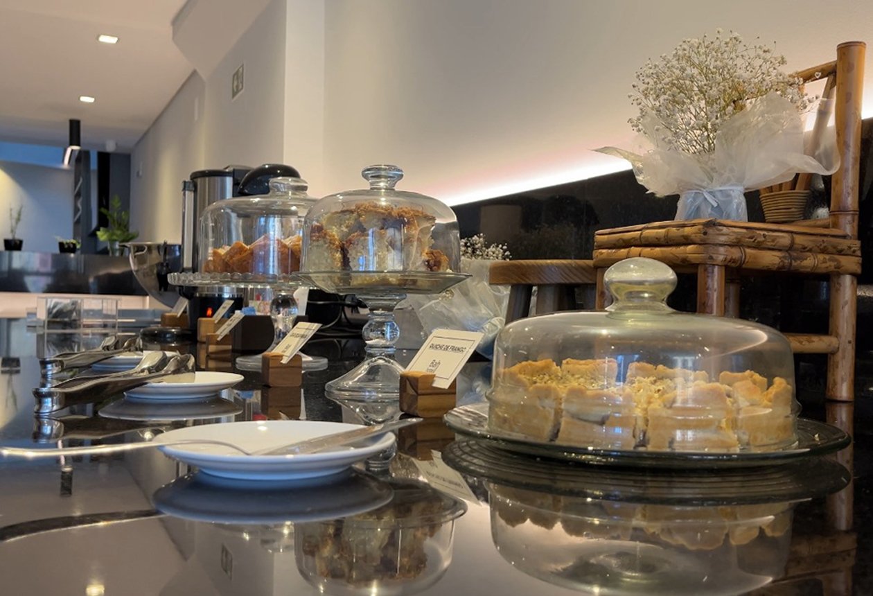 bolos, sempre fresquinhos, acompanhados por chás, café e